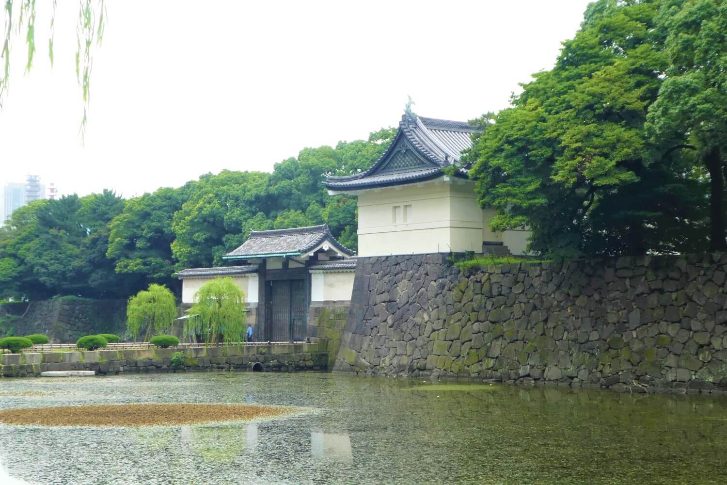 From the Kitanomaru park, it is possible to reach the palace gardens via the northern gate. Unfortunately, these gardens are not open every day of the week. And you may guess: it’s closed. So let’s take a tour along the canal and the wall. Most of this outer wall dates back to the 17th century.